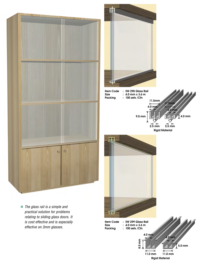 The glass rail is a simple and practical solution for problems relating to sliding glass doors. It is cost effective and is especially effective on 3mm glasses.