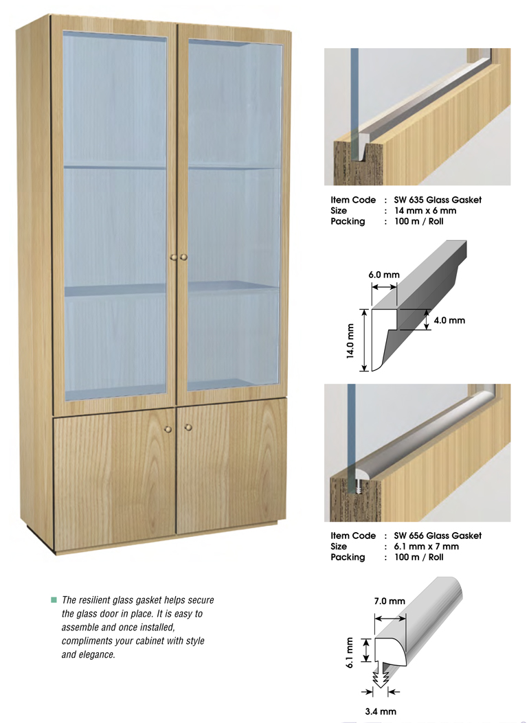 The resilient glass gasket helps secure the glass door in place. It is easy to assemble and once installed, compliments your cabinet with style and elegance.